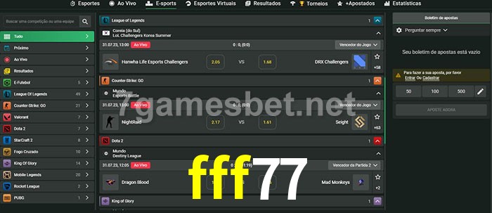O fff77 oferece uma grande seleção de opções de apostas em e-sports com probabilidades competitivas